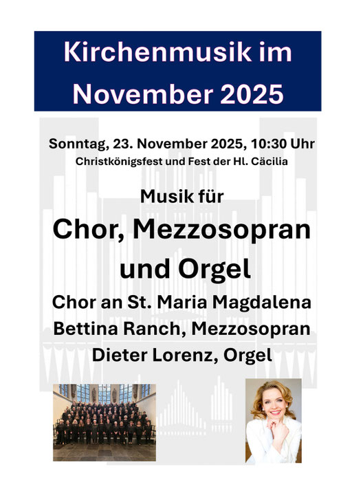 Herzlich willkommen auf den Seiten der Kirchenmusik an St. Maria Magdalena Geldern. Die Reihe der geistlichen Konzerte bestehen seit 56 Jahren. Hier finden